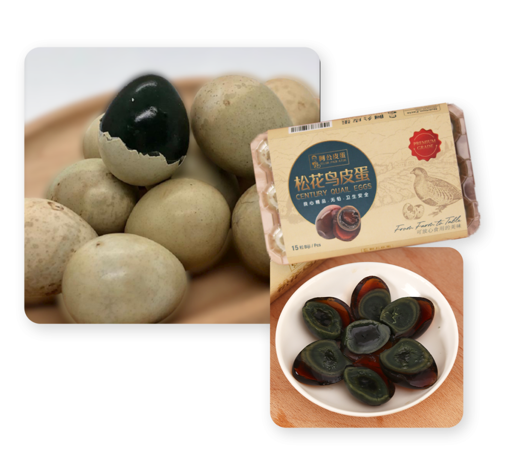 A traditional delicacy with a modern twist, our century quail eggs are preserved and aged to perfection, offering a unique taste experience.